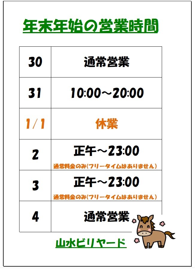 年末年始の営業時間